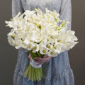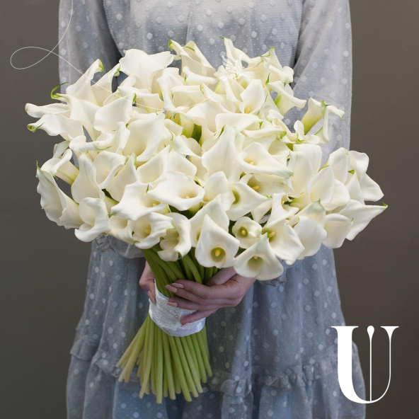 Букет состоит из 101 белой каллы, что делает его ярким и запоминающимся.