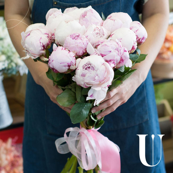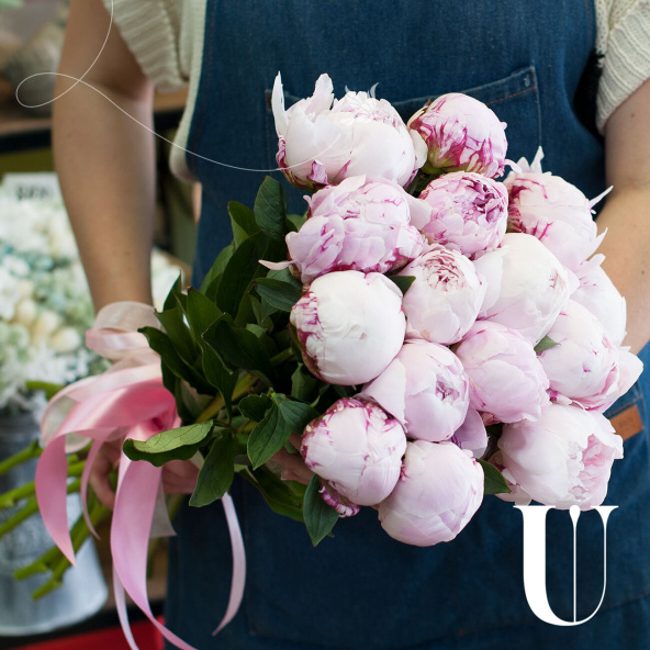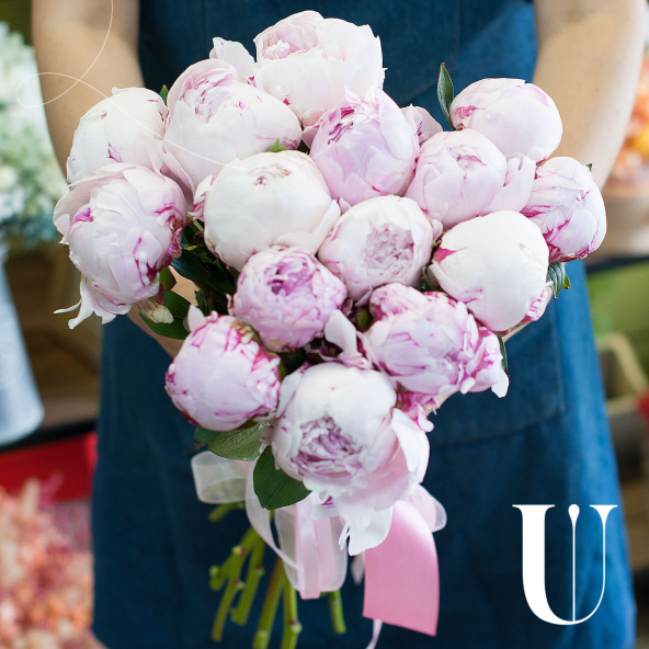Монобукет из 15 розовых пионов сорта Сара Бернар
