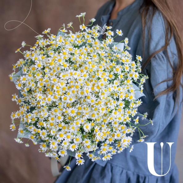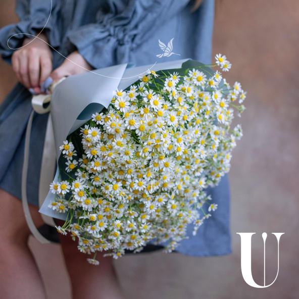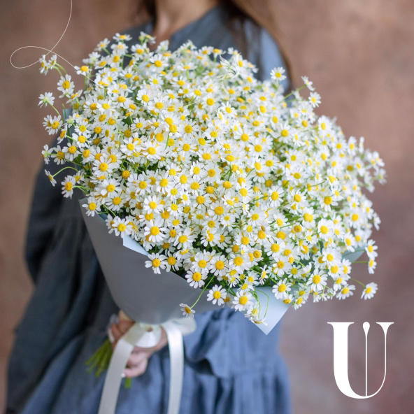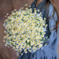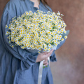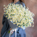 Монобукет из белых кустовых хризантем в дизайнерской упаковке