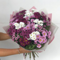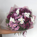 Огромный букет из кустовых хризантем в дизайнерской упаковке