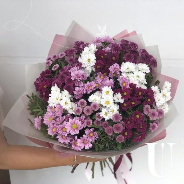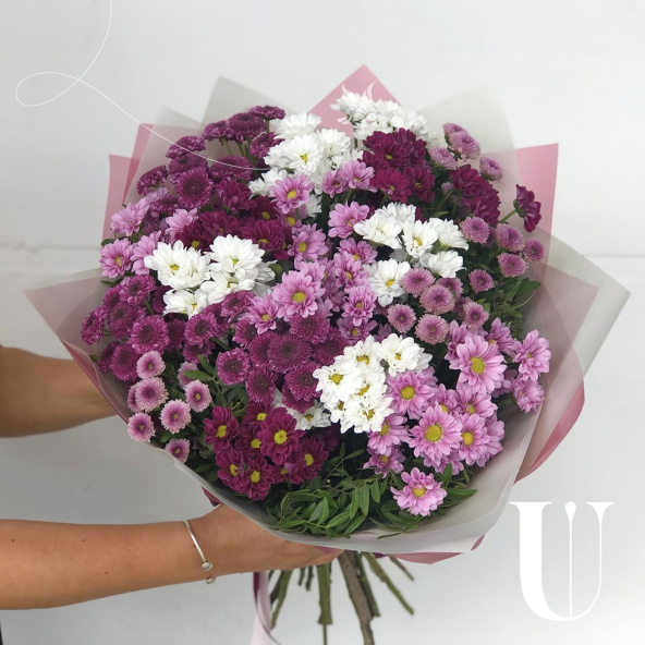 Велилепный микс из хризантем непременно порадует получателя