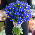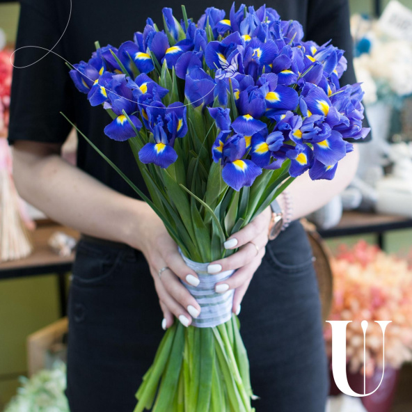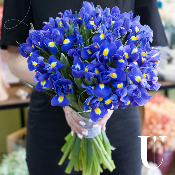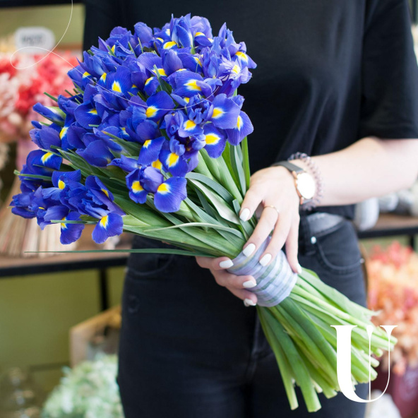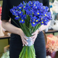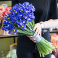 Монобукет из белых и синил лизиантусов в стильной упаковке