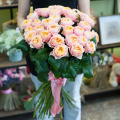 Большой букет из 101 розовой розы сорта Аква в упаковке