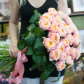 Большой букет из кустовых роз сорта Елена с атласной лентой