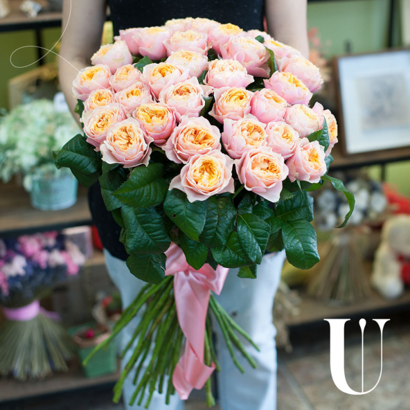 Монобукет из 35 белых роз в дизайнерской упаковке