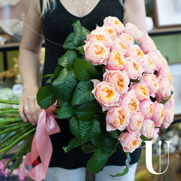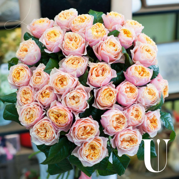 Большой букет из кустовых пионовидных роз Мисти Бабблз