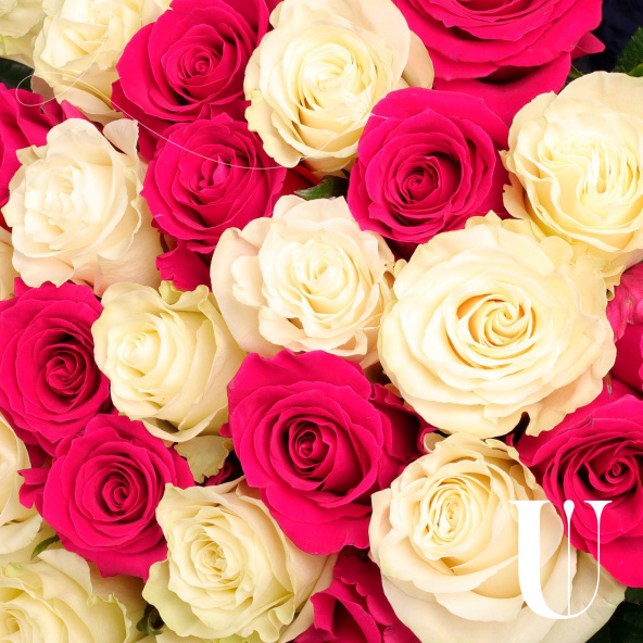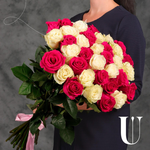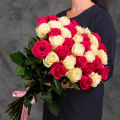 Букет из 31 белой и розовой Эквадорской розы, 70 см