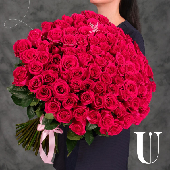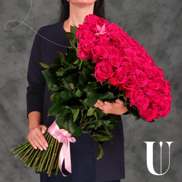 Букет "101 розовая Эквадорская роза 70см"