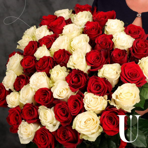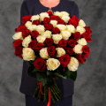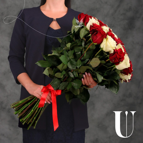 Букет из 55 красных и белых Эквадорских роз, 70 см