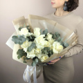 Букет из кремовых кустовых роз в дизайнерской упаковке