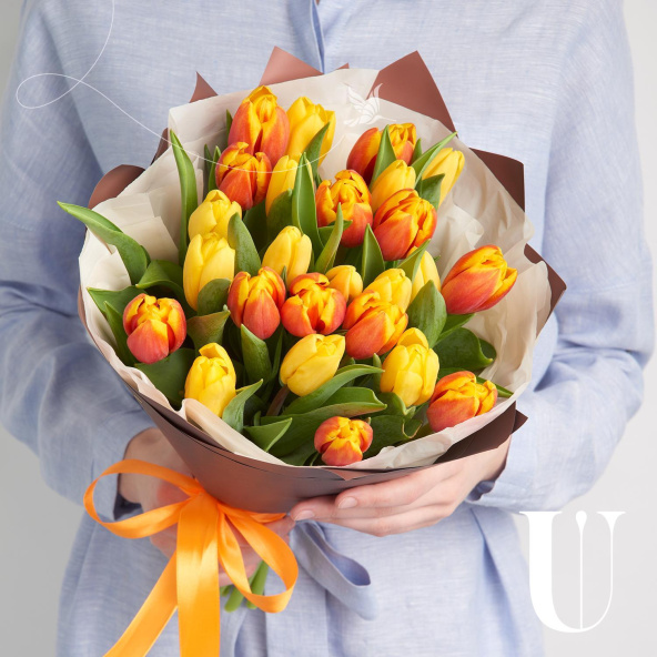 Тюльпан желтый, оранжевый - 25 шт