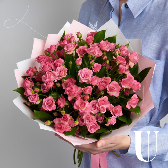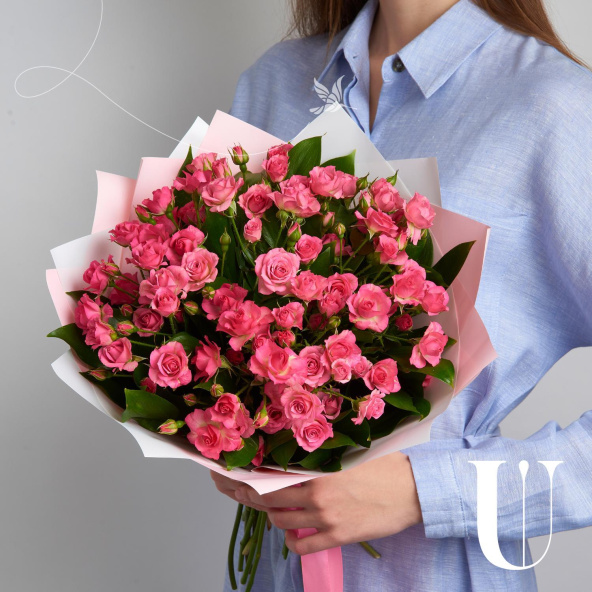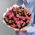 Монокомпозиция из кустовых роз в дизайнерской упаковке
