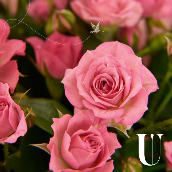 Роза кустовая, розовая, 50 см. - 11 шт
