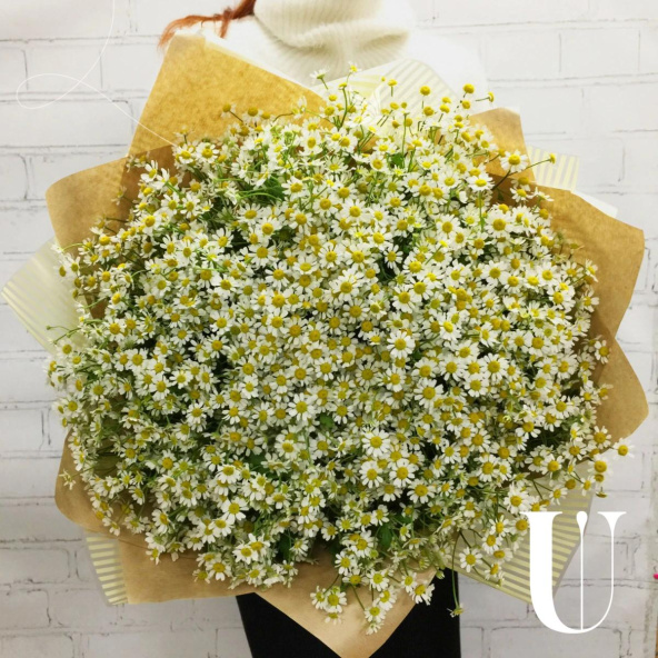 Букет из 15 розовых орхидей и ромашки в дизайнерской упаковке