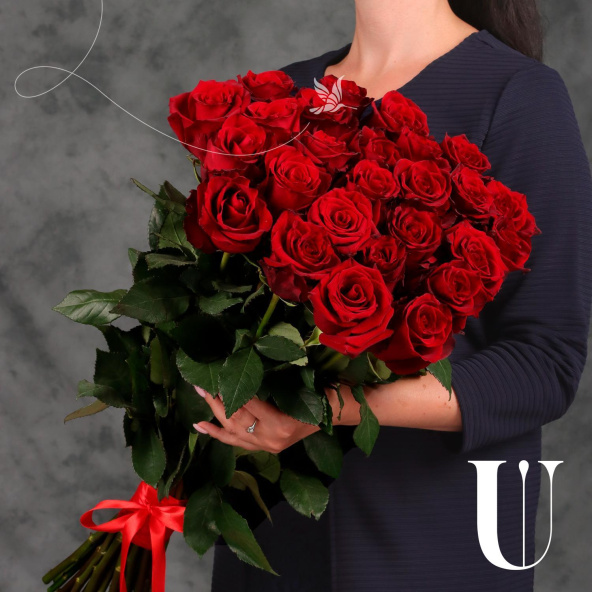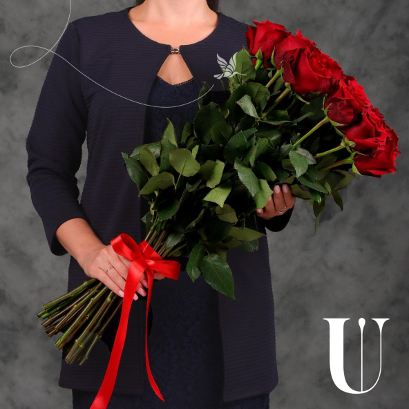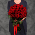 Монобукет из 55 роз сорта Ред Наоми 60 см