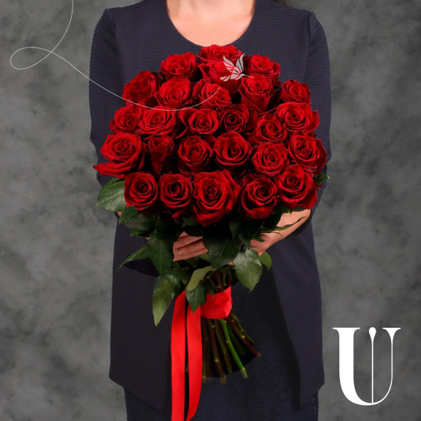 Монобукет из 51 красной розы в дизайнерской упаковке
