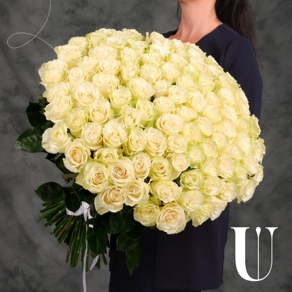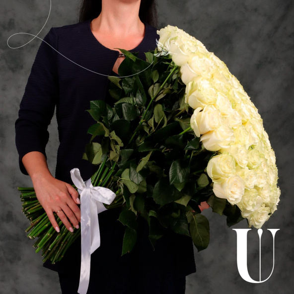Букет "101 белая Эквадорская роза 70см"