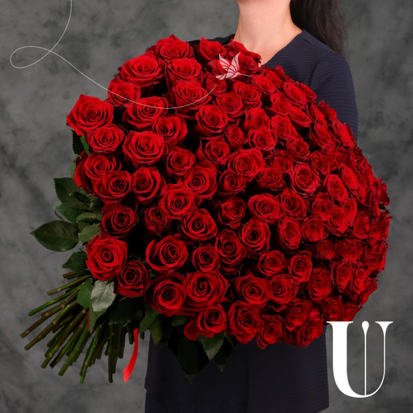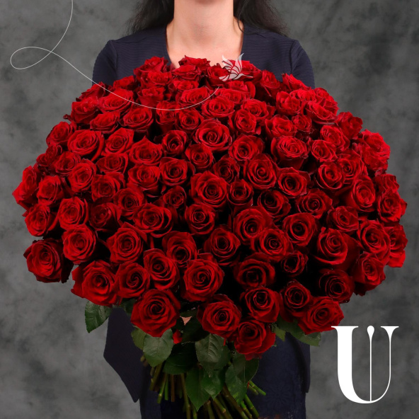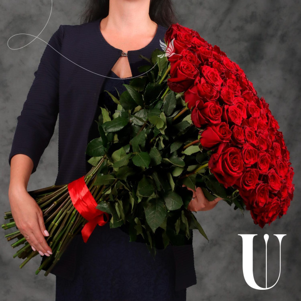 Шикарный букет из 101 элитной эквадорской розы сорта Эксплорер, 70 см