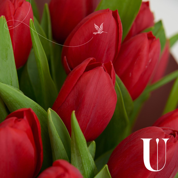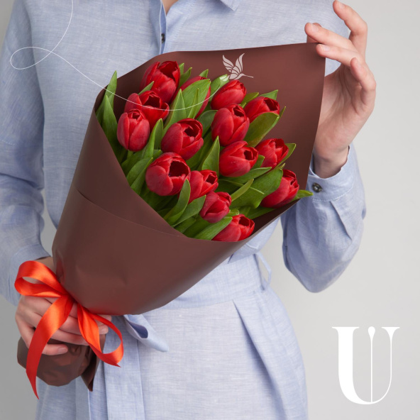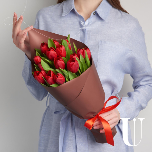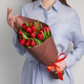 Букет из 15 тюльпанов микс в дизайнерской упаковке