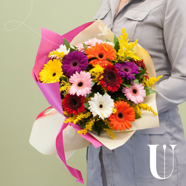- Гербера, микс - 15 шт