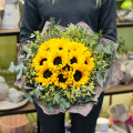 Букет из 9 кустовых роз Свит Сара 50 см в глянцевой пленке