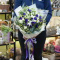 Букет из 10 белых эустом и белой гортензии в стильной упаковке