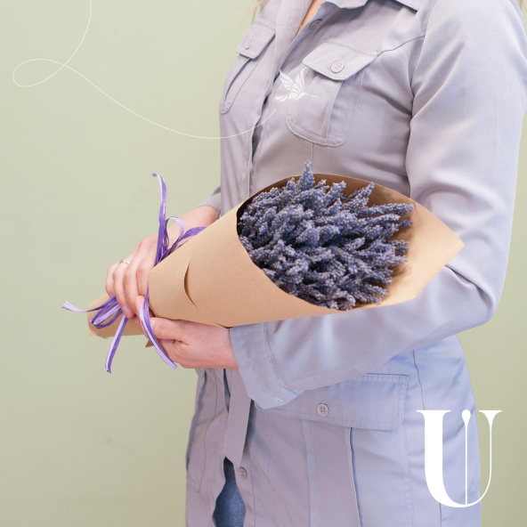 Букет фиолетовой гортензии в фиолетовой упаковке