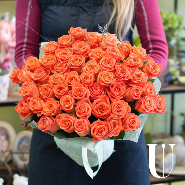 Монобукет из 51 розы Ред Наоми в розовой упаковке