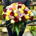 Монобукет из 55 роз сорта Ред Наоми 60 см