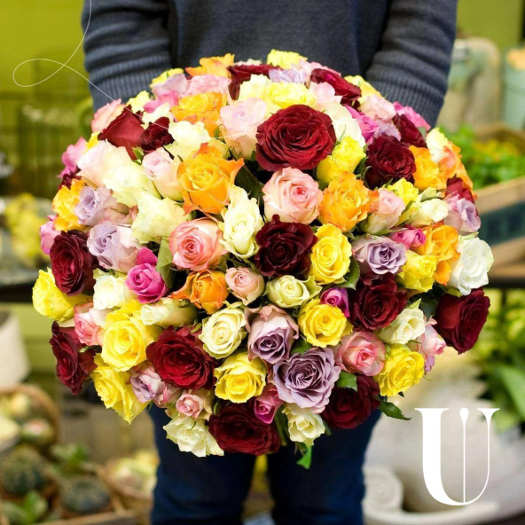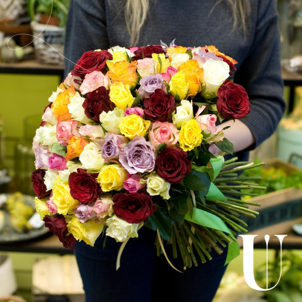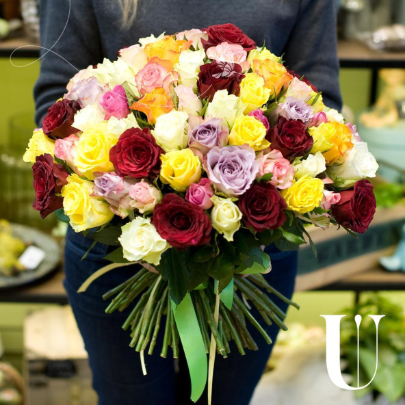 Большой букет из 51 оранжевой розы в стильной упаковке
