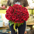 Монобукет из кустовых пионовидных роз Бомбастик в упаковке
