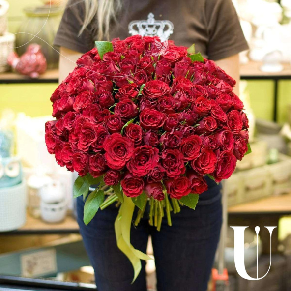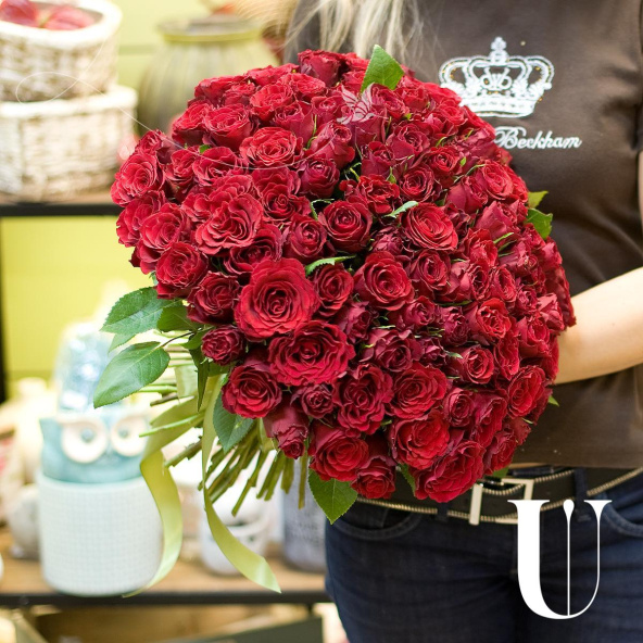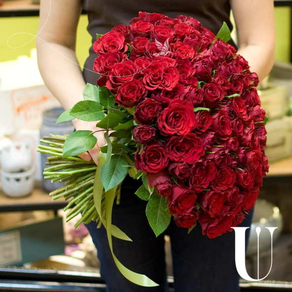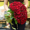 Букет из 15 пионовидных роз сорта Пинк Экспрешн в дизайнерской упаковке