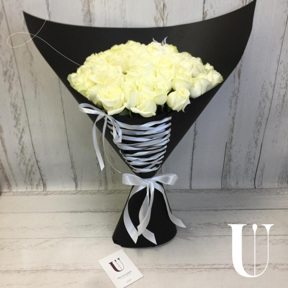 Монобукет из 51 красной розы в дизайнерской упаковке