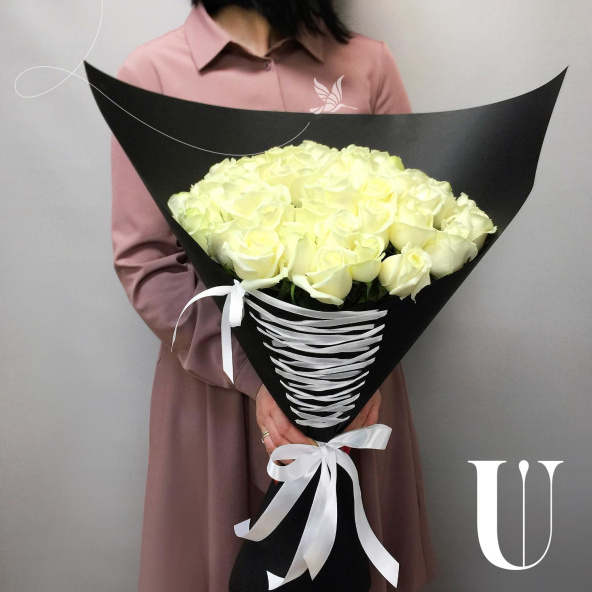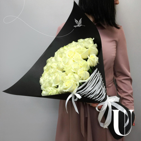 Букет из 19 роз Вайт Охара 50 см в упаковке