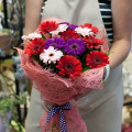 Монобукет из красных гербер мини в упаковке