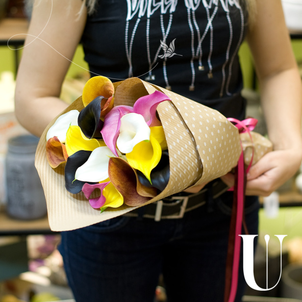 Монобукет из альстромерий микс в дизайнерской упаковке