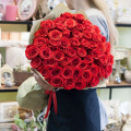 Монобукет из 101 розы сорта Аваланж и Гран При