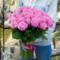 Роскошный букет из роз сорта Пинк Мондиаль в нежной упаковке