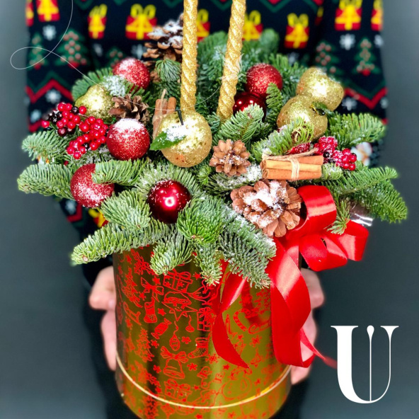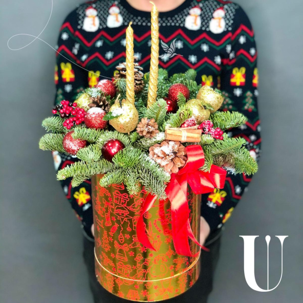 - Шляпная коробка золотая (выс. 25 см, диам. 20 см) - 1 шт