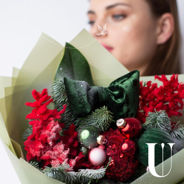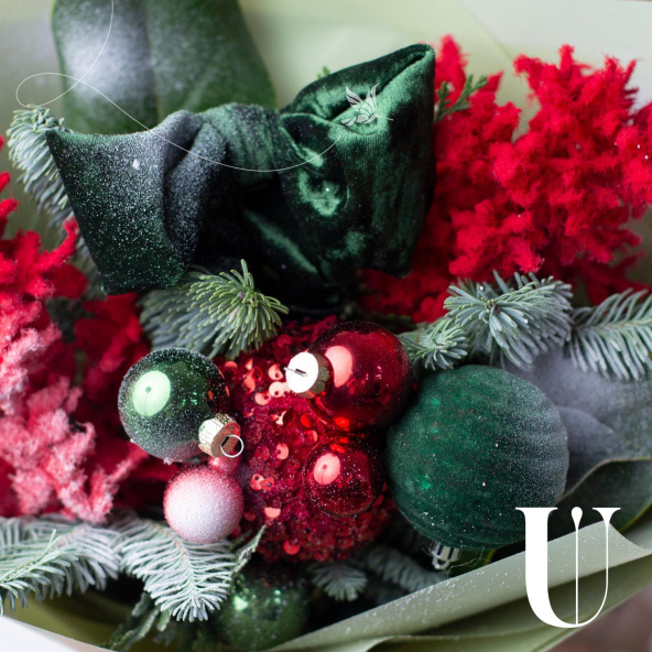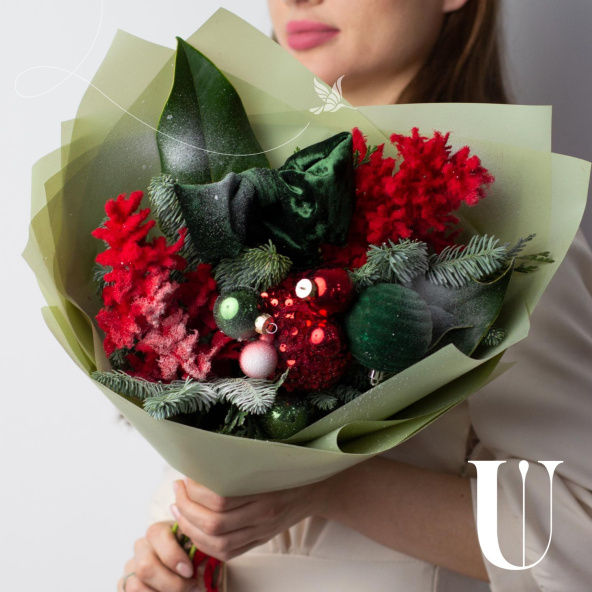- Упаковка: дизайнерская пленка салатовая, лента