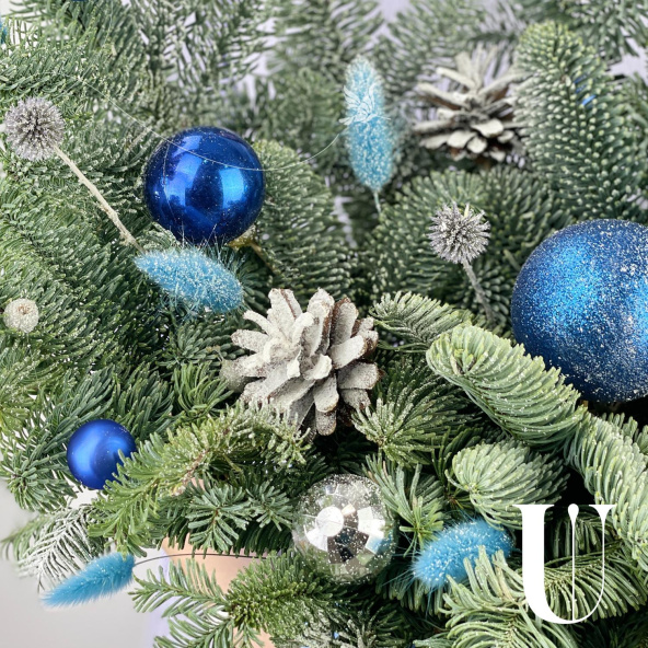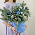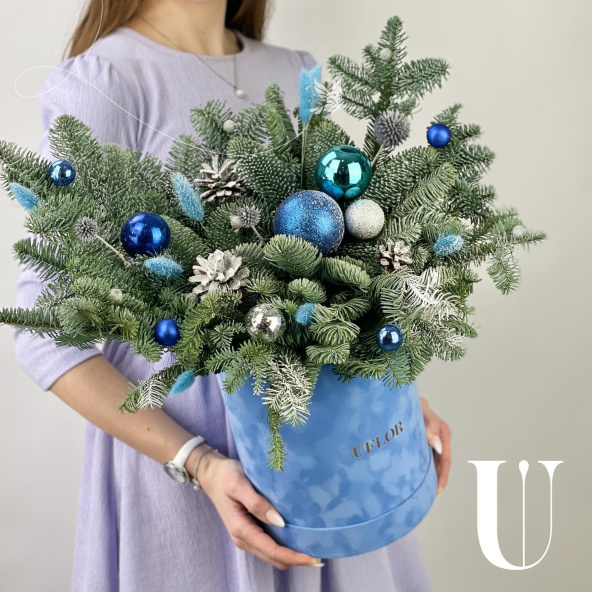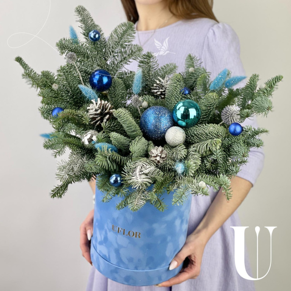 - Шляпная коробка бархатная (U), голубая (выс. 25 см, диам. 20 см) - 1 шт