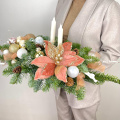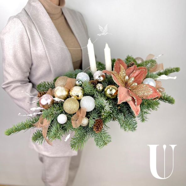 Новогодняя композиция из нобилиса, роз Ред Наоми и декора