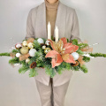 Новогодняя композиция из еловых ветвей, шишек и свечей
