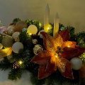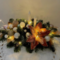 Новогодняя композиция из еловых ветвей, шариков, шишек и гирлянды