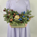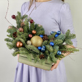 Новогодняя Композиция из живой ели нобилис. Лапник нобилиса отличается высокой стойкостью, он совсем не осыпается, а слегка и незаметно подсыхает сохраняя красивый внешний вид. Композиция из такой ели будет радовать Вас больше месяца и простоит все новогодние праздники! Радуйте себя и своих близких !