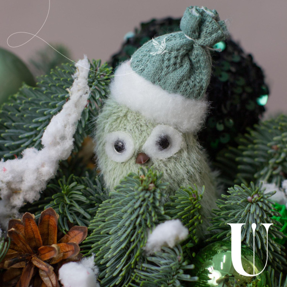 Новогодняя композиция из нобилиса и декора в шляпной коробке
