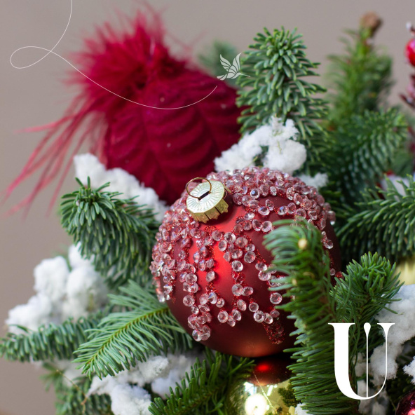 Шар стекло красный с декором 10 см - 3 шт.