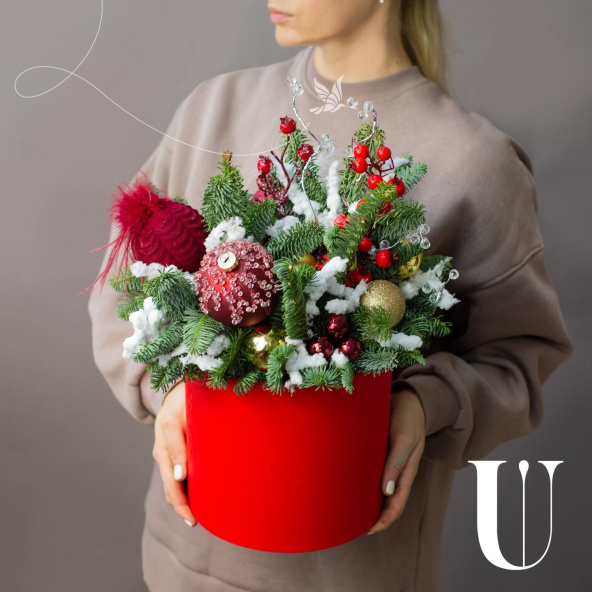 Шляпная коробка красная 20 см на биофлоре.