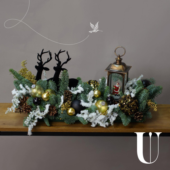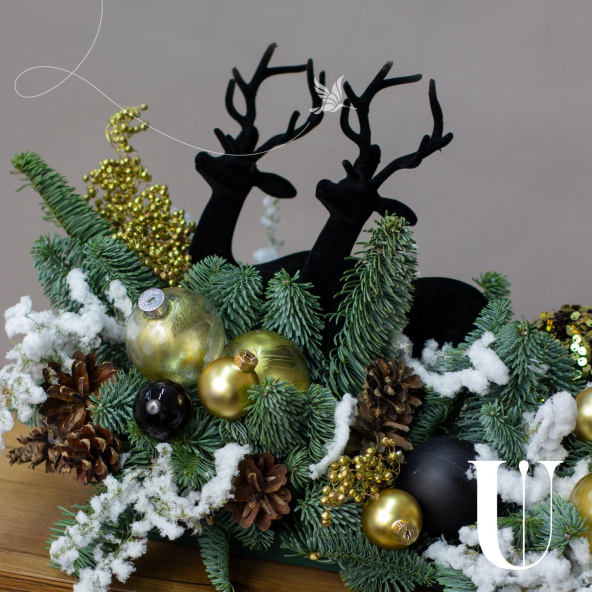 Композиция обработана искусственным снегом.