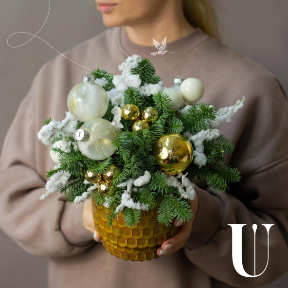 Новогодняя композиция из нобилиса и декора